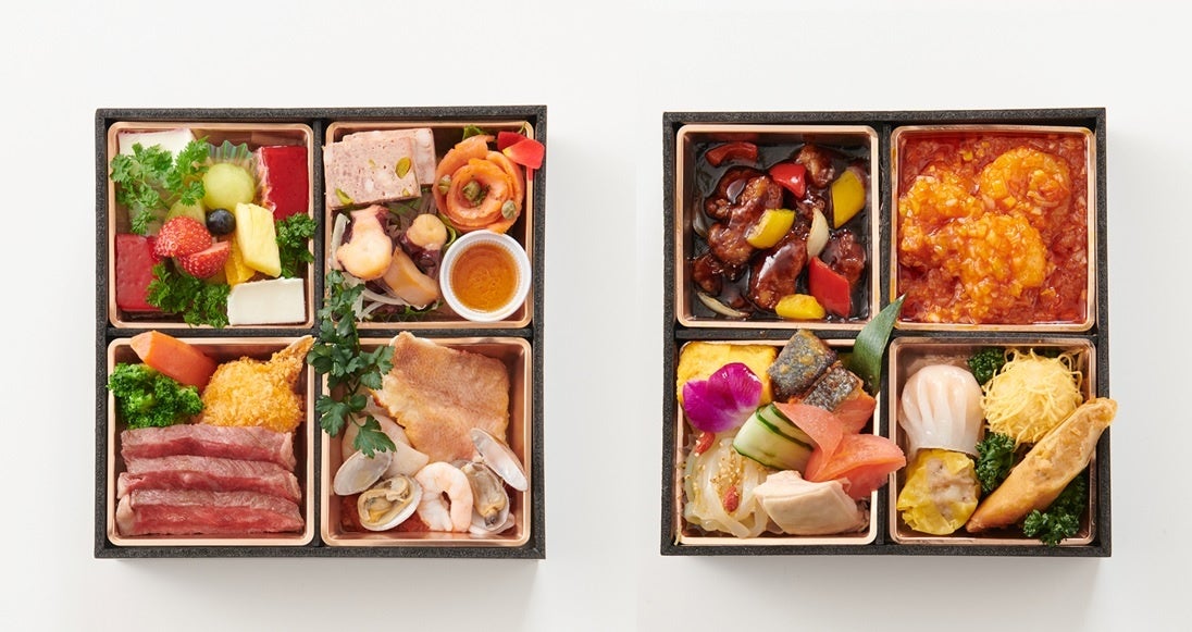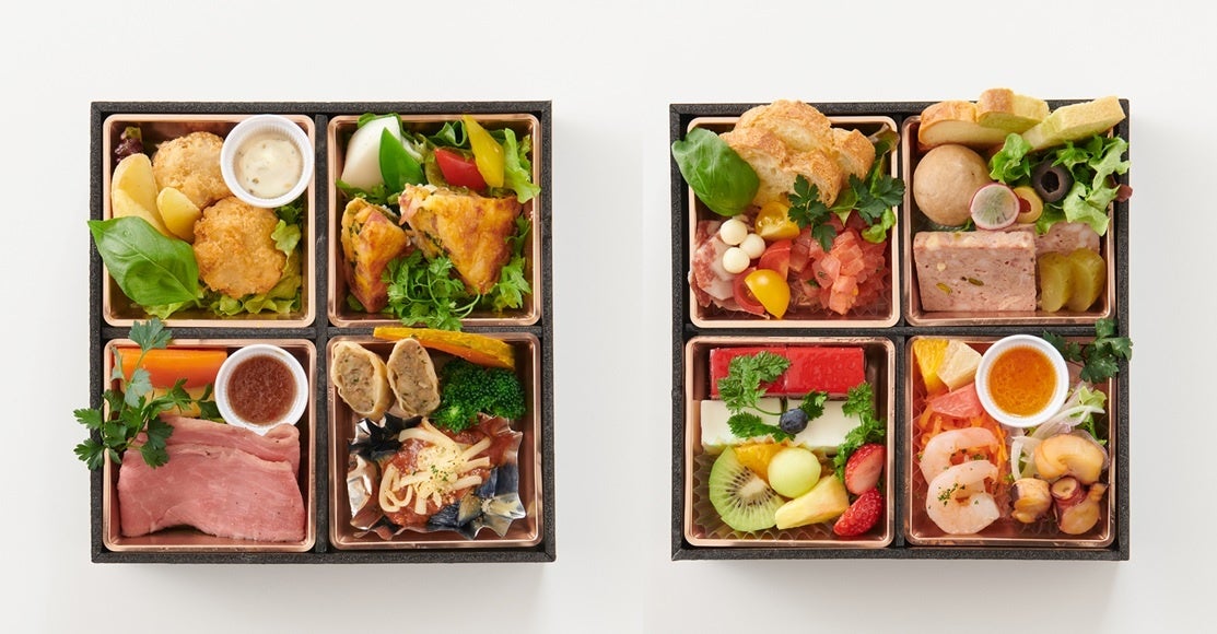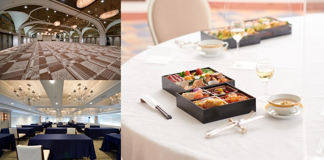 従来の宴会で主流だった銘々盛や大皿盛、立食ビュッフェスタイルの料理提供から、持ち帰り可能なお重箱スタイルに変更することで、会議・会合後のお持ち帰りやケータリングなど、開催形式に合わせた幅広い対応が可能となります。もちろん広々としたホテルの宴会場でもスタッフとの接触機会を最小限に抑えながら90分のフリードリンクとともにホテル自慢の宴会料理を味わうこともできます。