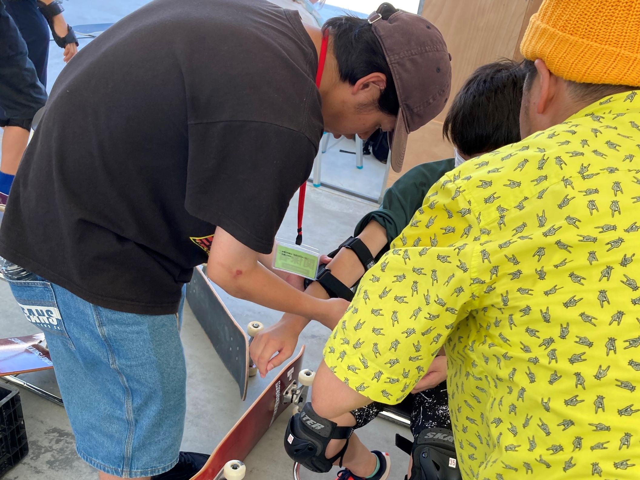 スケートボード初心者体験会では、プロテクターの装着から実技指導までインストラクターとして各班に分かれてスケートボード学科の学生が行いました。参加者が楽しんでもらえるように個別に声をかけたり、アドバイスをしたり短時間で成長する姿、できた喜びを表現する姿が見られ楽しさを共有することができました。インストラクターとして、まだまだ未熟な部分もありますが、主催者や参加者の期待に応えることや責任感、コミュニケーションスキルの大切さなど多くのことを学び得る機会となりました。