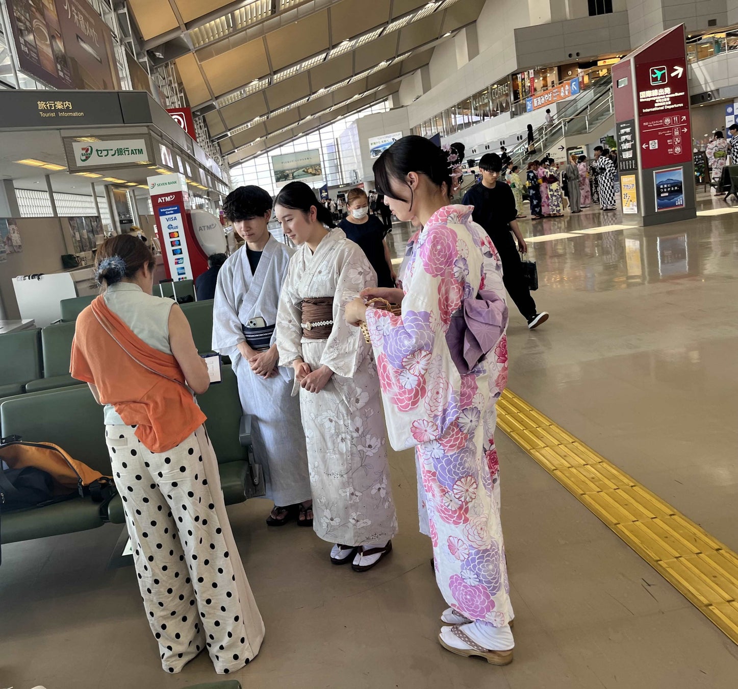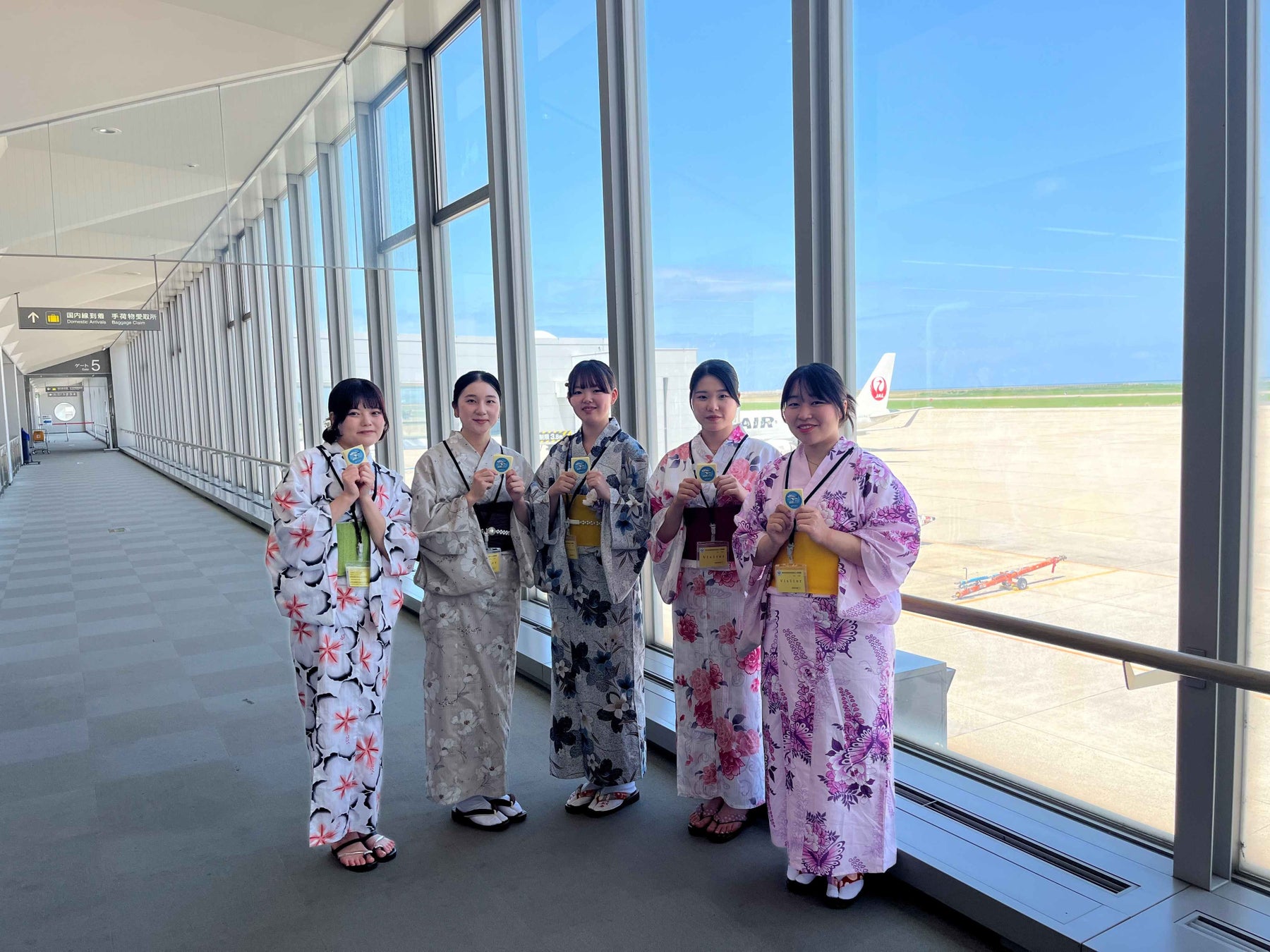 国際エアライン科をはじめ、新潟空港の活性化を目指す活動に賛同した学生有志29名が七夕の時期に合わせてイベントを企画しました。伊丹線、新千歳線、ハルビン線の出発、到着ロビーでは学生が浴衣を着てお出迎え、お見送りをいたしました。また、空港ロビーに学生自作の七夕飾りを用意し、空港利用者が短冊を書いて飾ることができる特別コーナーも設置いたしました。準備した100枚ほどの短冊は次々と七夕飾りに飾られ、利用客からは「季節を感じられる良いイベントですね」と声をかけていただきました。