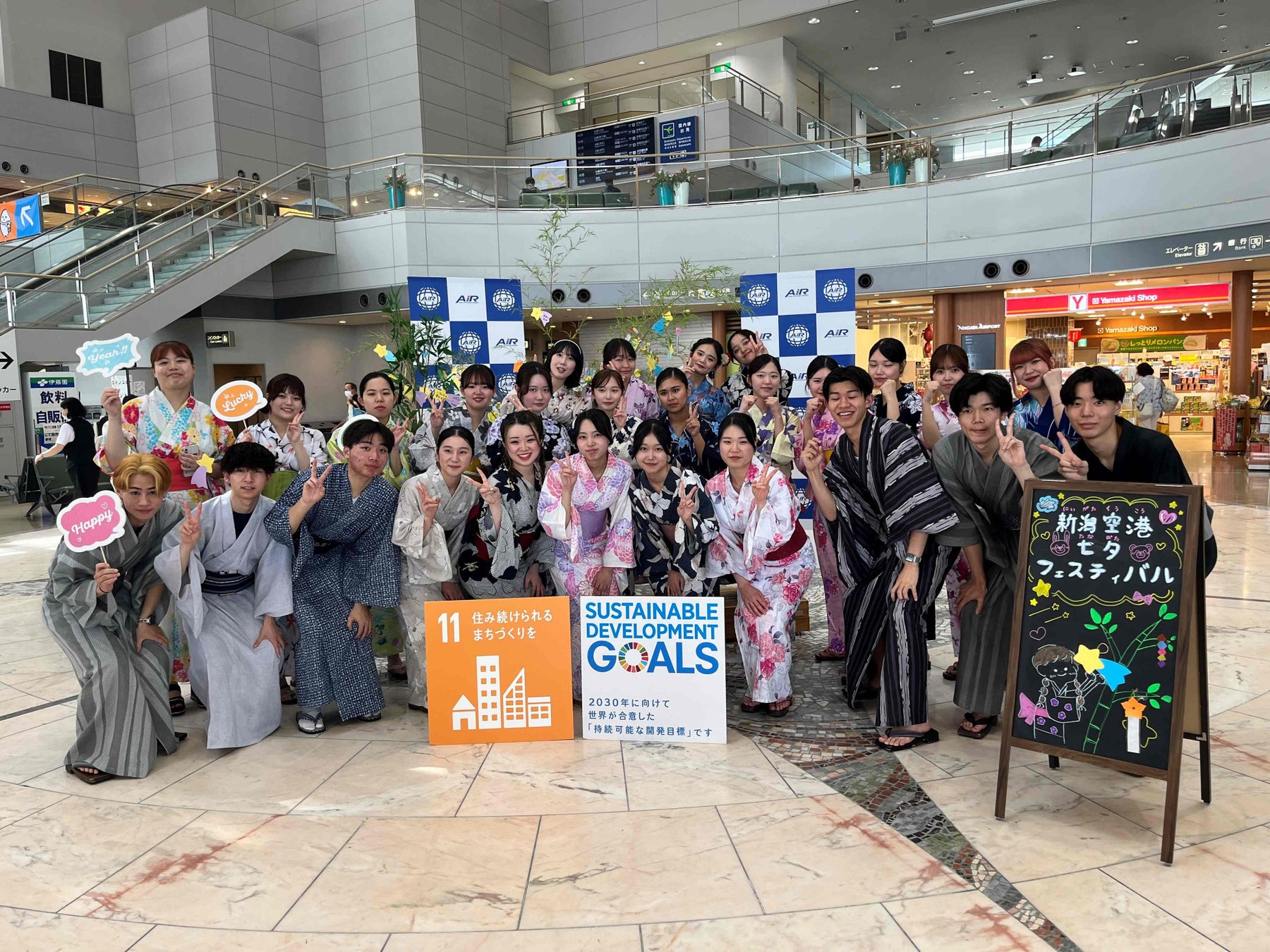 国際外語・観光・エアライン専門学校では、SDGsゴール11「住み続けられるまちづくりを」活動の一環として、7月5日(金)に新潟空港旅客ターミナルビルで「新潟空港七夕フェスティバル」を開催いたしました。