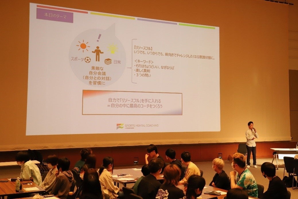 今回の特別授業は、IT・ゲーム・CG・映像・デザイン分野のクリエーターを目指す学生を対象に行われました。スポーツにおけるメンタルコーチングの手法を応用することで、逆境に強くなるためのマインドを身につけ、自己理解や自己成長を促すことを目的としています。