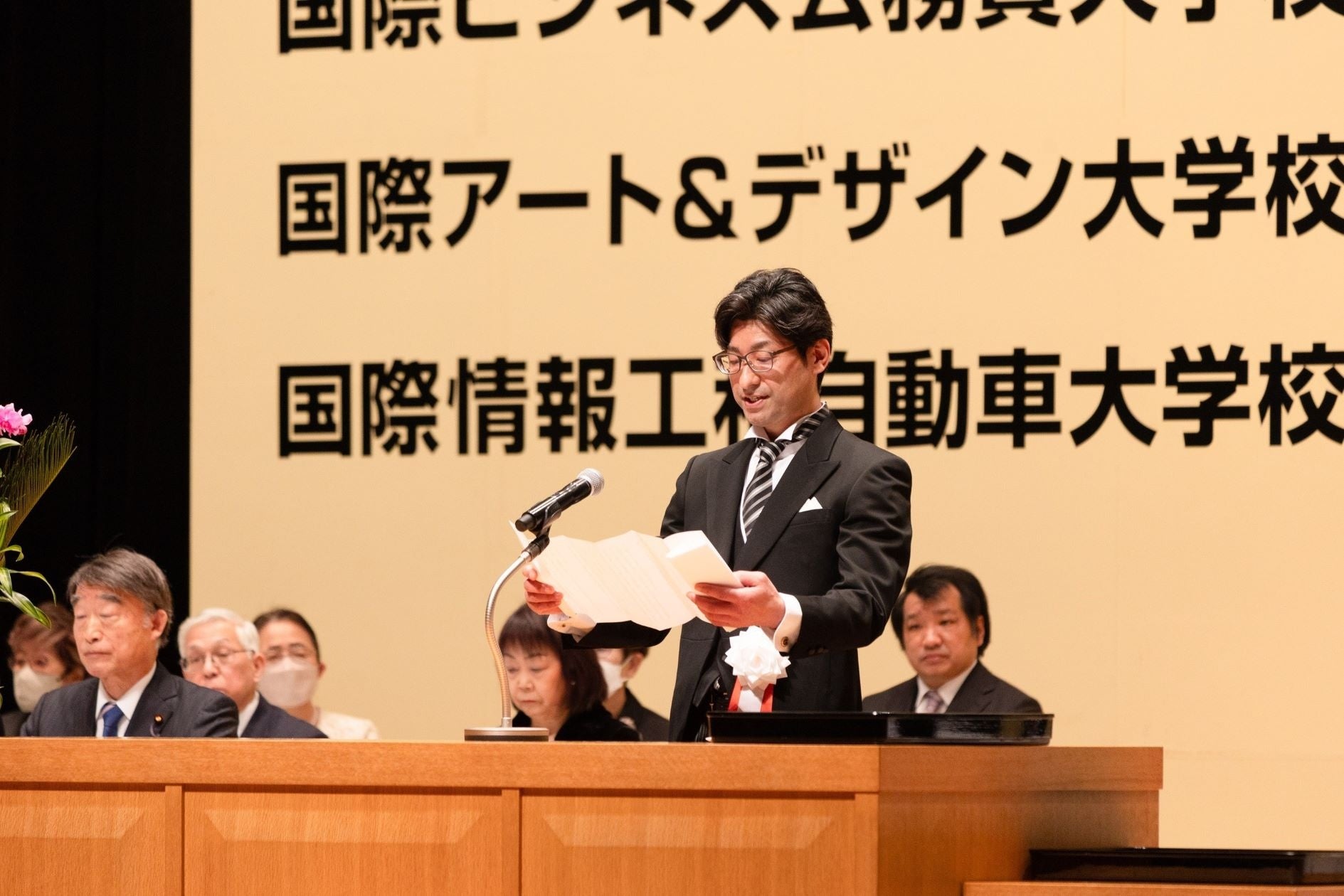 式典では、各学校長が代表者に卒業証書を授与し、国際ビジネス公務員大学校の増子校長が「学び続ける心、挑戦する心、他者への思いやりを忘れないでほしい」と式辞を述べました。