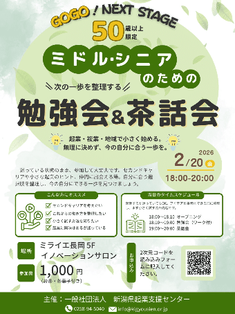 また、長岡市にとどまらず、魚沼市、小千谷市、見附市など新潟県内各地で起業相談会や起業スクールを開催し、地域に根ざした支援を継続しています。近年増えつつあるシニア層の起業にも着目し、50代以上を対象とした取り組みも始めています。