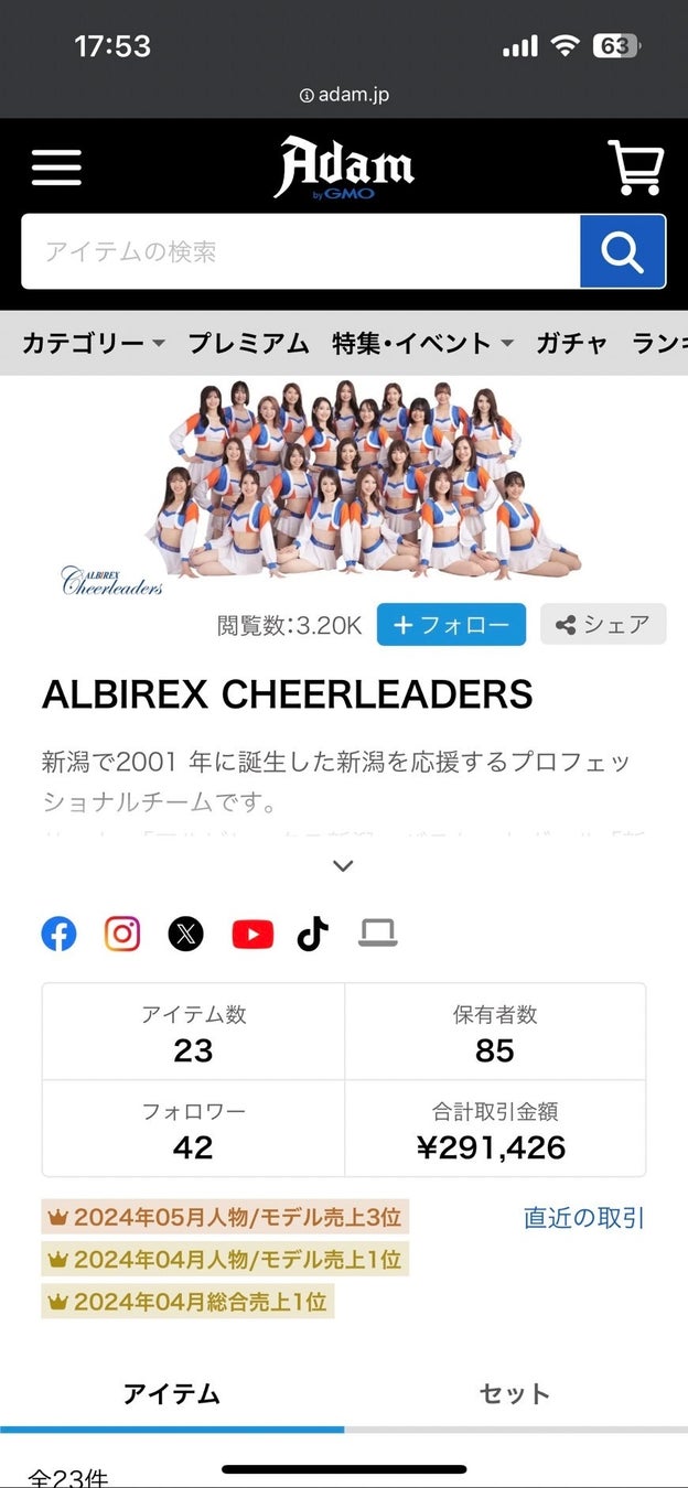【アルビレックスチアリーダーズ】「Adam byGMO」2024年4月総合売上1位を獲得したNFTトレカ第2弾発売のお知らせ