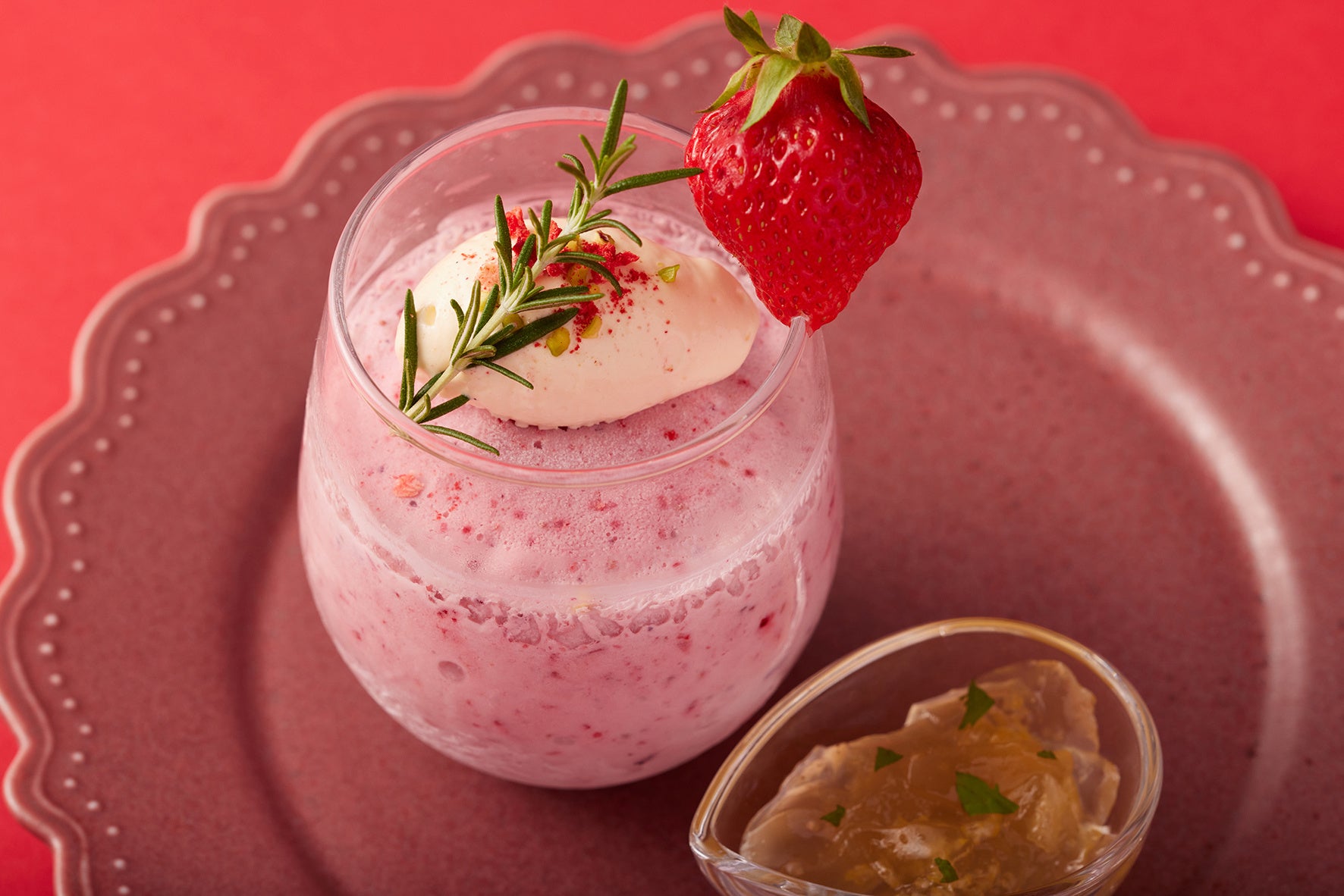3種のベリーと爽やかなヤスダヨーグルトを贅沢に使用した苺ベースのグラニータ。