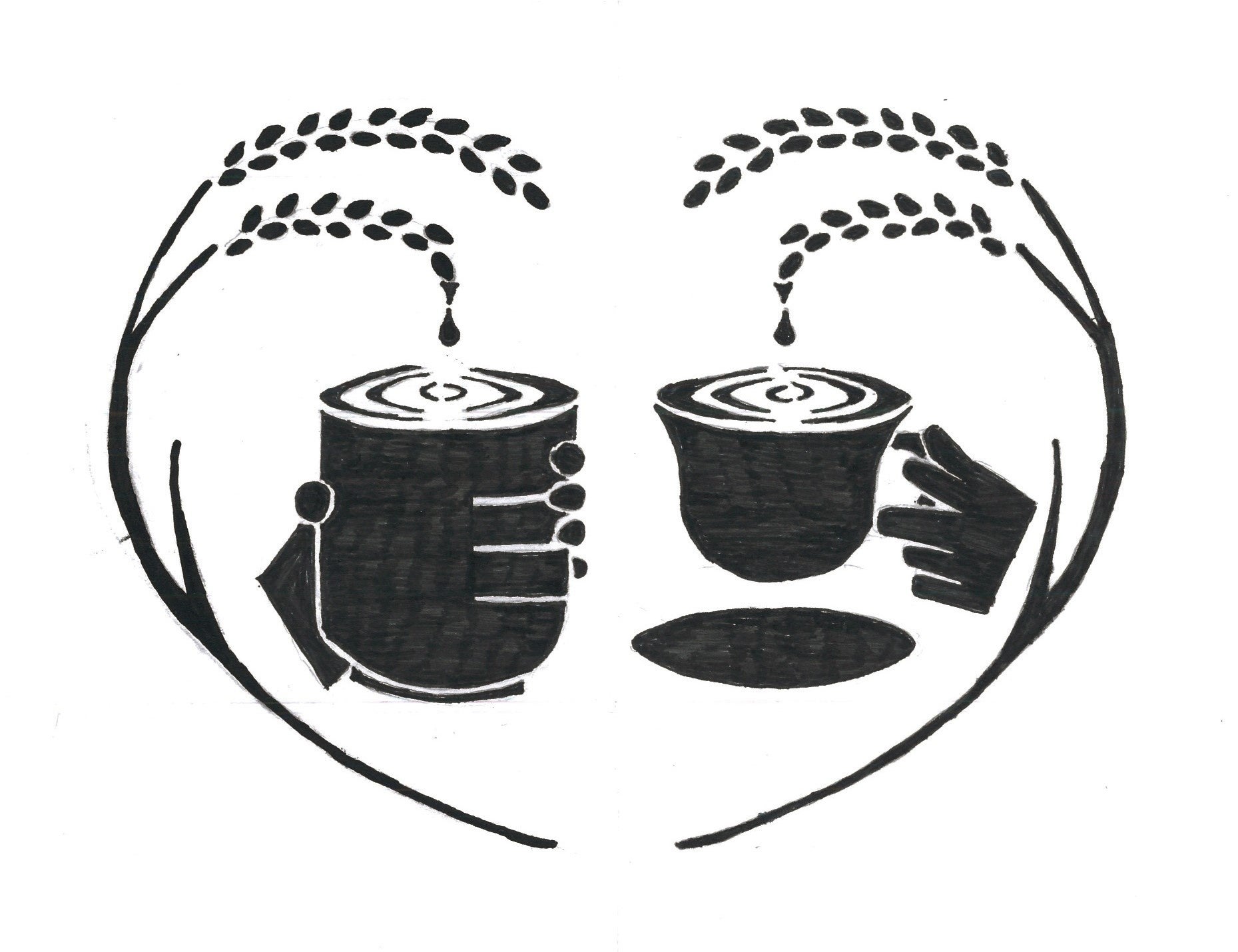 【コメコピ(仮)】とは…玄米を焙煎機でじっくりと煎ってドリップしたオリジナルノンカフェインドリンク。黒煎りした玄米はミネラル成分が豊富で、「郡山市ハッピーファーム」の安田さんが農薬や化学肥料などを一切使用せず、無農薬のなめこの栽培くずと稲藁だけを与えて栽培した無農薬自然栽培玄米を使い、低温でじっくりと焙煎しています。この独自の製法により、深いコクと豊かな風味を楽しむことができます。