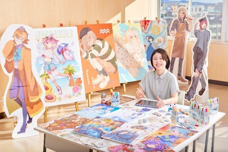 イラストの多彩な表現方法を学び、人に感動を与えるイラストレーター、キャラクターデザイナーを目指す学科。イラストレーションの基礎描画方法から新しい技術である「Live2D®」の習得やSNSスキル、コミュニケーションスキルなど将来イラストを仕事に活かすための様々なスキルを学びます。