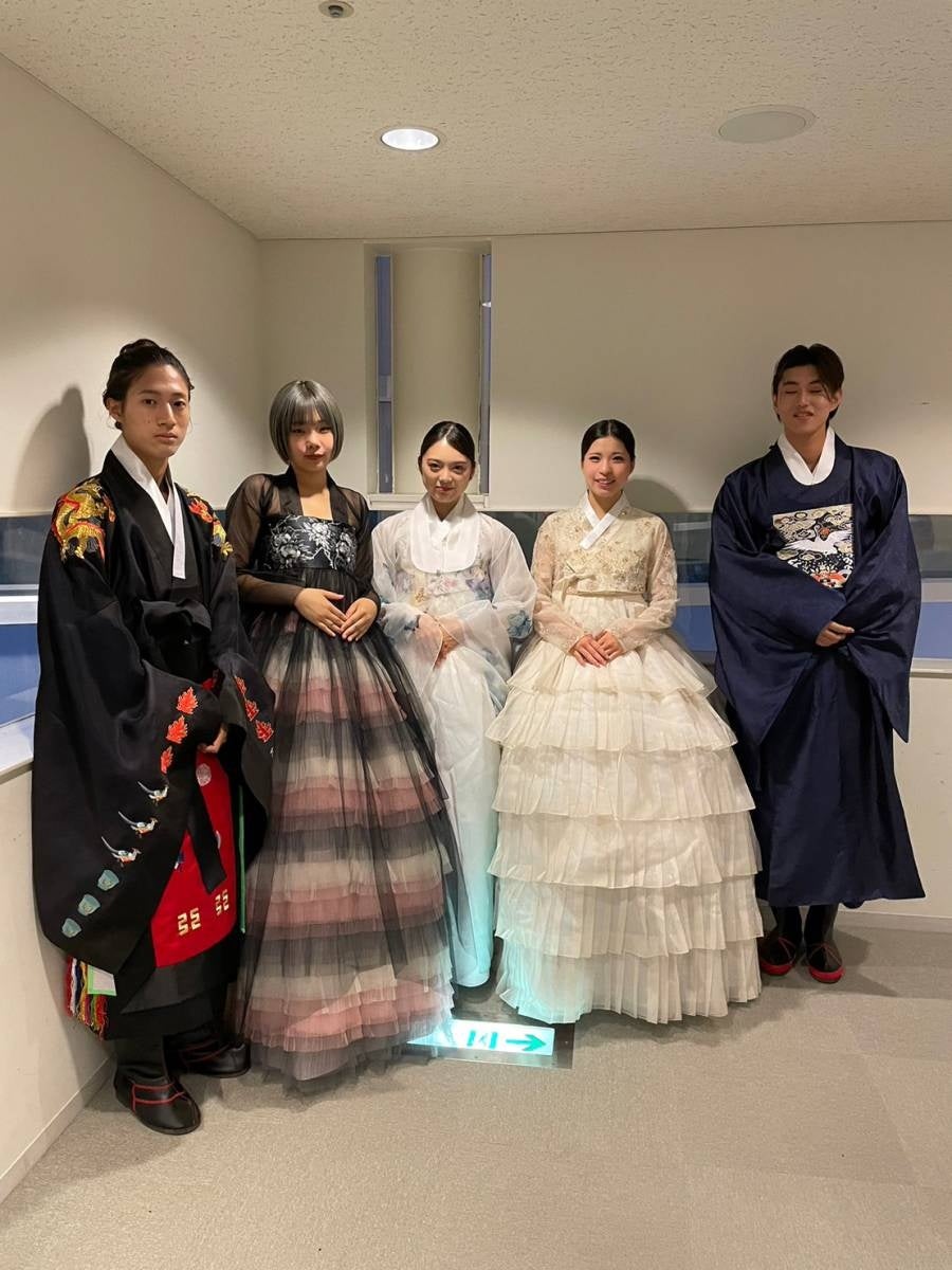 本学は韓服ファッションショーのモデルとして学生4名が参加しました。モデルとして参加した1年ファッションスタイリスト科の加藤愛望さんは「韓国の方と初めてお話する機会をいただき、言語が違うにも関わらず、楽しくお話しできたことがすごく感動しました。また国際ビューティモード専門学校や国際音楽・ダンス・エンタテイメント専門学校の学生とも仲良くなれ、とてもいい経験になりました。」