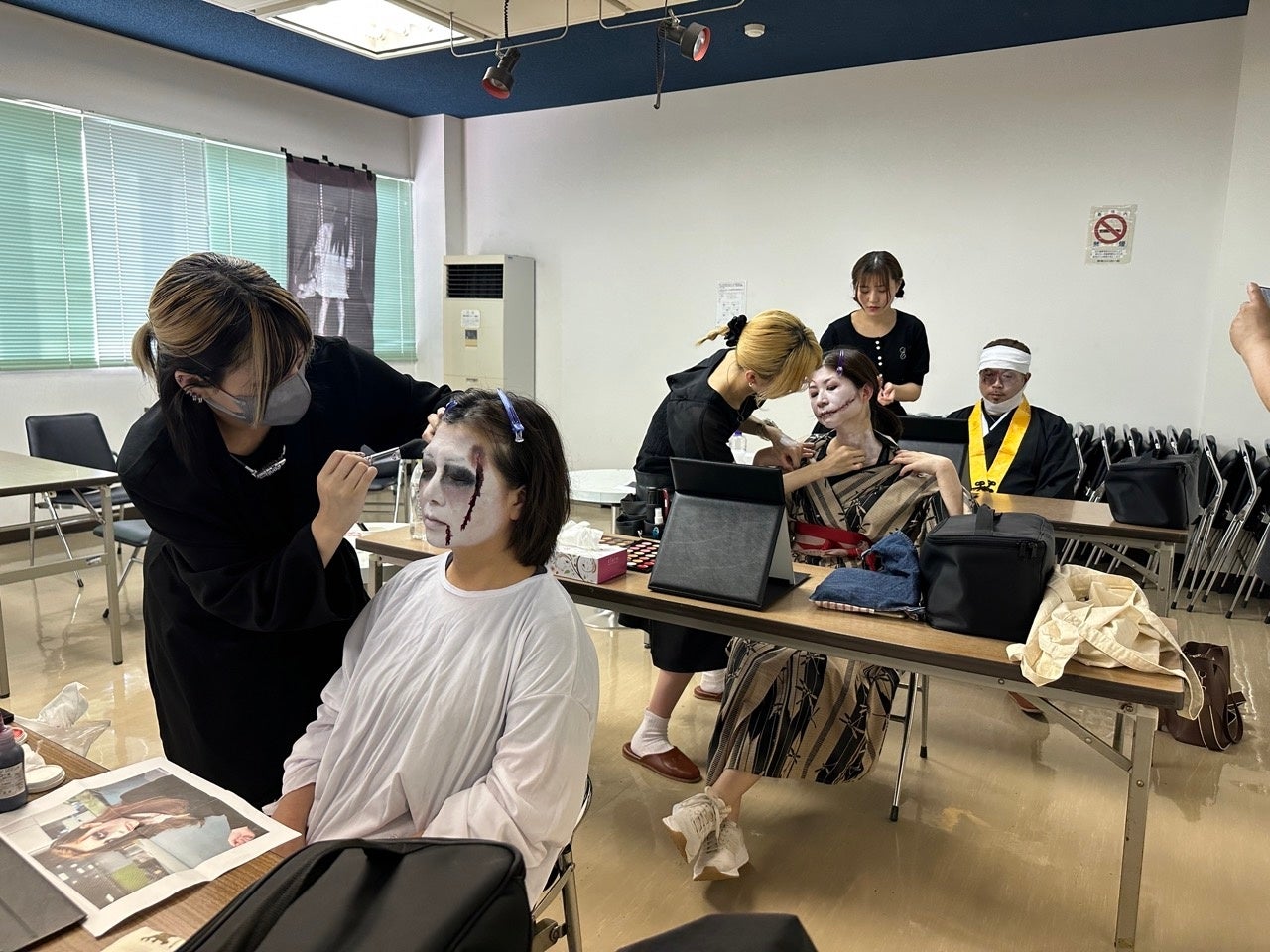 ●内容:納涼肝試し「お化け特殊メイク」協力、ヘアメイク学科学生3名