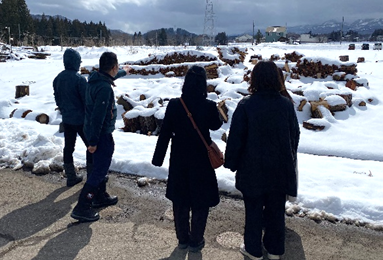 2024年3月23日(金)に、女子美術大学の学生が妙高市を訪問し、国際自然環境アウトドア専門学校で実際に保管・活用されている薪や、想定イベント会場となっている国際自然環境アウトドア専門学校内のキャンプ場「スターゲイザーフィールド」を見学したのち、妙高市にて市長をはじめとする関係各部署の管理職に向けたプレゼンテーションを行いました。