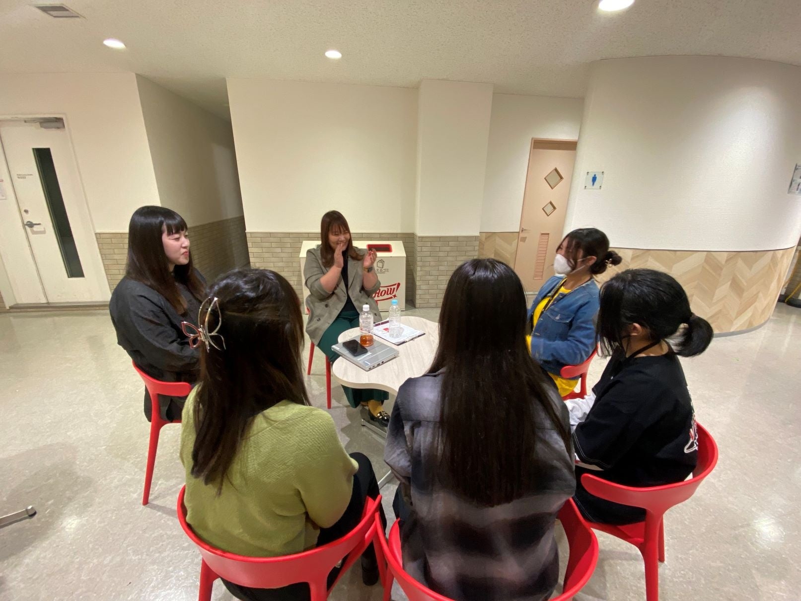 講演後もチカコホンマさんにアプローチしたい学生が集まり、更に深い経験談やアーティスト活動、就職活動に向けたアドバイスなどをお話ししてくださいました。加えて、新潟よしもと住みます芸人のマネージャーであり、同校の卒業生でもある酒井さんも学生の席に加わり、マネージャーのお仕事やタレントさんとの信頼関係、更に在学時代のことなどをお話ししてくださり、学生たちにとって憧れの先輩として輝く姿を見せていました。
