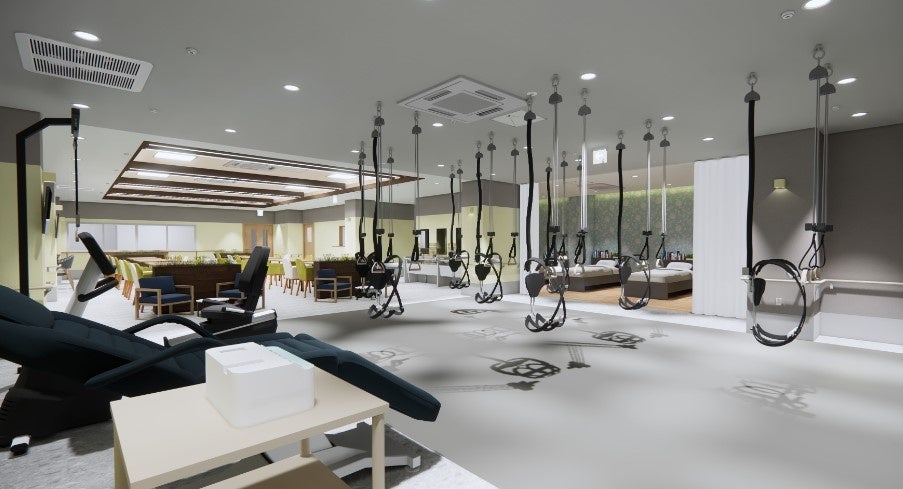 最新のバランスツール「スペースワンダー」で体が躍り喜びます。まるで水中にいる様な感覚で安心してリハビリを行うことができます。