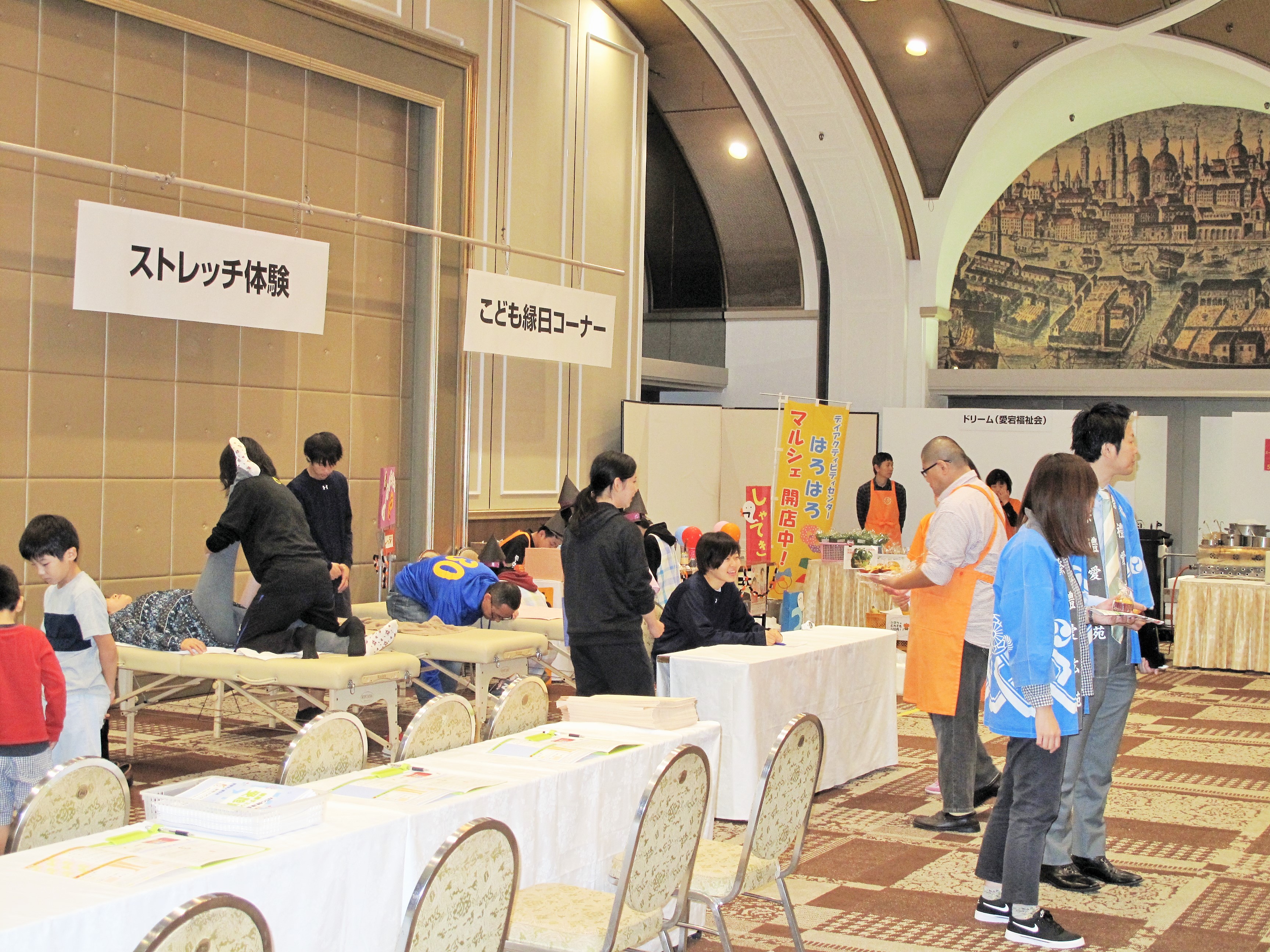フードコートもあり、愛宕福祉会の障がい者就労支援センター ドリーム、ホテルイタリア軒、SUBWAYがそれぞれ出店。日々の暮らしを応援する健康機器や食品、サプリメントなどの展示・販売も行われ、グループ法人以外の酒井医療(株)様、一正蒲鉾(株)様、大塚製薬(株)様にもご協力いただきました。