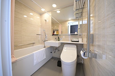 リニューアルでは、全室バスルームが一新されています。他にもシリンダーキーからカードキーへ変更になり、42型テレビが設置されました。客室名称もスタンダードタイプから「モデレートタイプ」に変更しています。