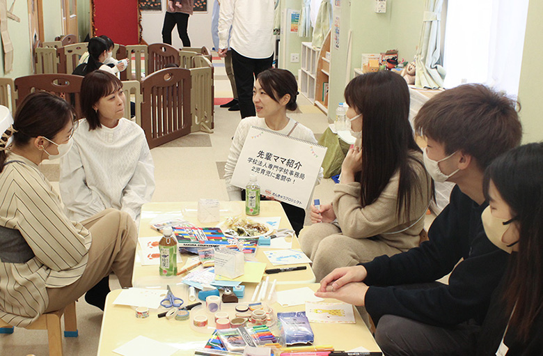 子どもを持ちたいと思う社員が増え、また、2人・3人と複数の子どもを持ちたいという希望が抱ける組織にしていくための方針です。NSGインターナショナルこども園の協力のもと、育休中のパパ・ママを対象に「子育て座談会」などを開催しています。